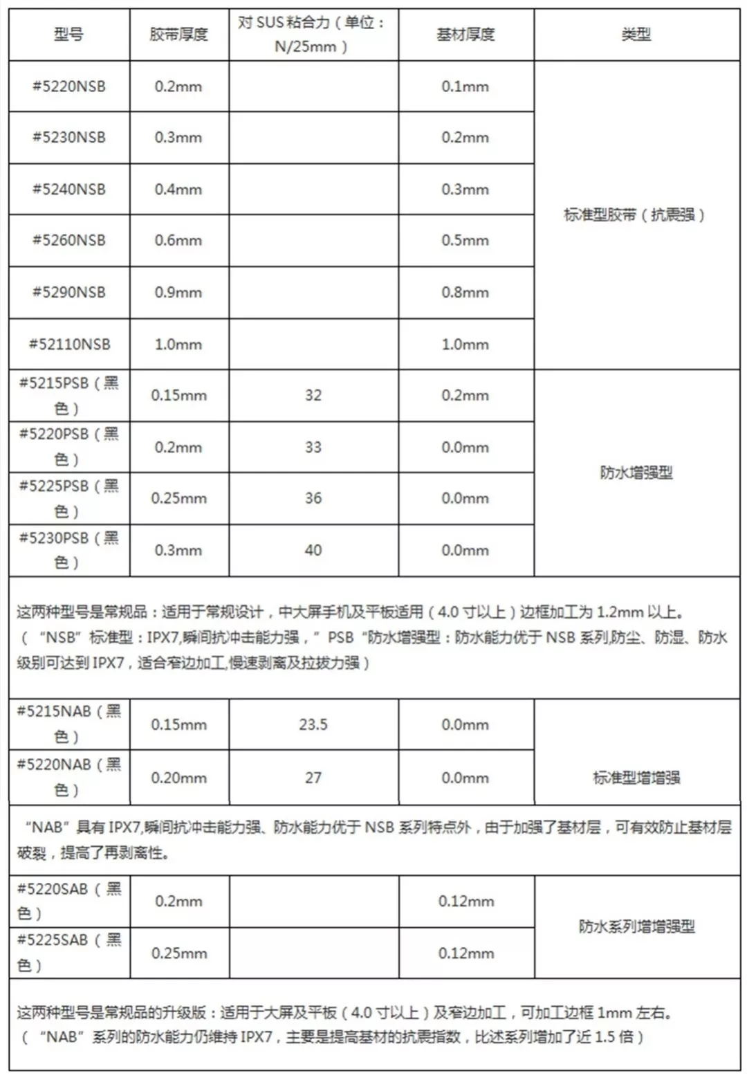 防水泡棉双面胶的型号性能与用途汇总